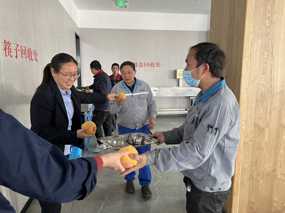 11月15日中午,yl23455永利集团的员工食堂内格外热闹,充满着欢声笑语,每位员工用餐竣事后可领取红彤彤的延安苹果一个,100多箱来自陕西延安的苹果被分发到yl23455永利员工手中,这不但是对员工光盘行动的勉励,也是yl23455永利为推进墟落振兴,实现配合富足的又一次助力。