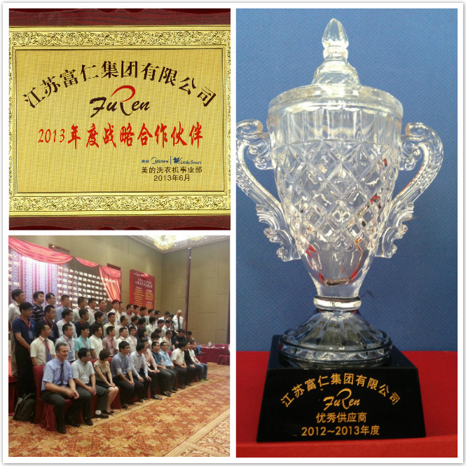 On June 18, 2013, Mr. Chen quanhong, general manager of furen machinery parts, a subsidiary of jiangsu furen group, led sales manager zhuang weihong and other staff to attend the meeting held by midea group in wuxi. 2013 supplier annual meeting of midea washing machine division . The invited to attend the meeting of more than 200 manufacturers, the whole atmosphere is warm. At the meeting, midea washing machine division summarized its achievements since 2012, advocated the strategy of supplier quality management, affirmed the improvement of excellent quality of suppliers, and Shared the cases of excellent technical innovation. The general representative of midea washing machine business unit analyzed the current economic situation and planned the future development trend of the washing machine business. It is reported that from 2013 July, August, the drum washing machine will be mass production, is expected to increase from the previous monthly 100,000 units to 170-180,000 units per month. This information gave great encouragement to the representatives of the major suppliers present. At 15:30 in the afternoon, the award ceremony pushed the atmosphere of the meeting to the climax. Furun group was awarded at the same time. 2013 excellent supplier ” , & other Strategic partners for 2013. Two awards. The award recognizes the company's efforts and achievements in the past and is an incentive for the future. The company should take this opportunity to double its confidence, promote precision manufacturing and processing to a higher level, and achieve the group's overall development strategy.